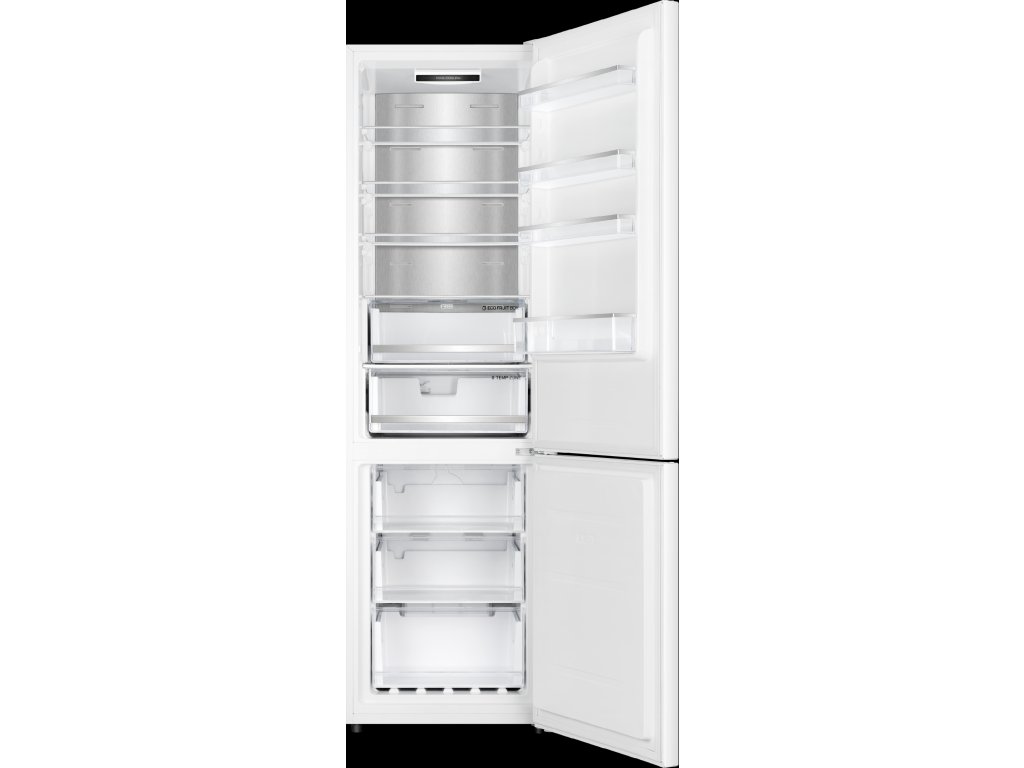 Volně stojící kombinovaná chladnička No Frost v bílém barevné provedení; Dotykový displej na dveřích chladničky vám umožní snadno nastavit teplotu a ovládat doplňkové funkce chladničky; Zásuvka na ovoce a zeleninu; Vertikální madlo na dveřích; Možnost změny směru otevírání dveří; Funkce: Rychlé chlazení, Rychlé mrazení, Prázdniny, SabbathMode, EnergySaving; Akustický alarm dveří; Demo režim; Akumulační doba (výdrž bez proudu): 11 hod.; Energetická třída D; Roční spotřeba energie: 207 kWh; Hlučnost 37 dB; Celkový objem 346 l; Rozměry (VxŠxH): 201 x 59,5 x 65 cm.