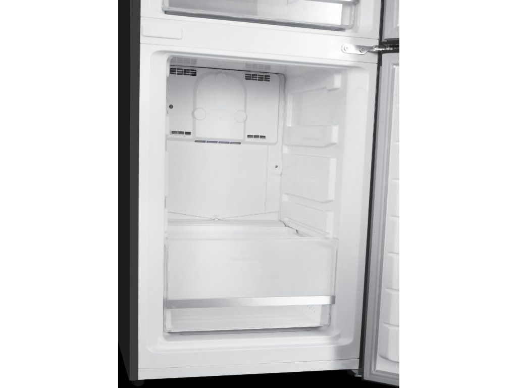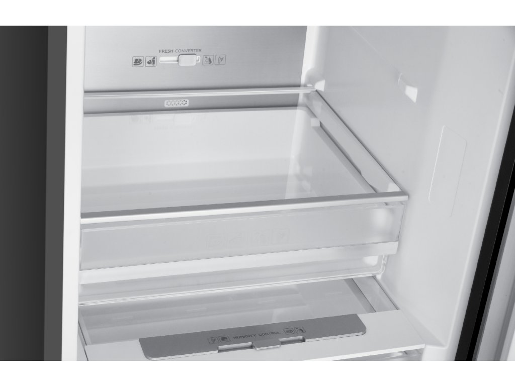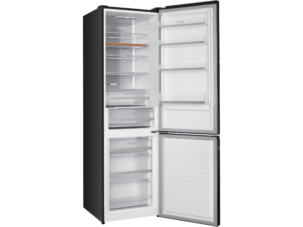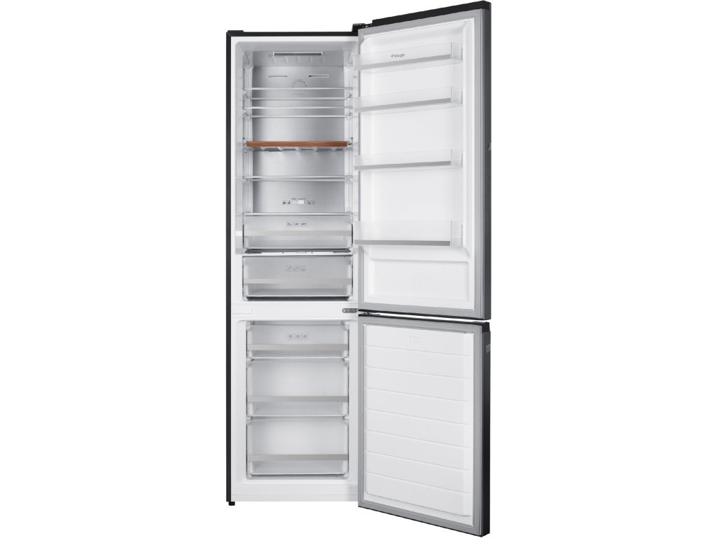 Volně stojící kombinovaná chladnička No Frost; Barevné provedení tmavý nerez; Horizontální integrované madlo ve dveřích; Celkový objem 377 l; Šířka 60 cm; Elektronická regulace teploty; Bíle podsvícený displej na dveřích; Led osvětlení; Možnost změny směru otevírání dveří; Funkce ECO, Prázdniny, Super (rychlé) mrazení, zámek displeje, signál otevřených dveří; En. třída C; Spotřeba el. energie: 168 kWh/rok; Akumulační doba (výdrž bez proudu) 13,5 h; Hlučnost pouhých 39 dB; Klimatická třída SN-T; Rozměry (VxŠxH): 200,5 x 60 x 67,5 cm.