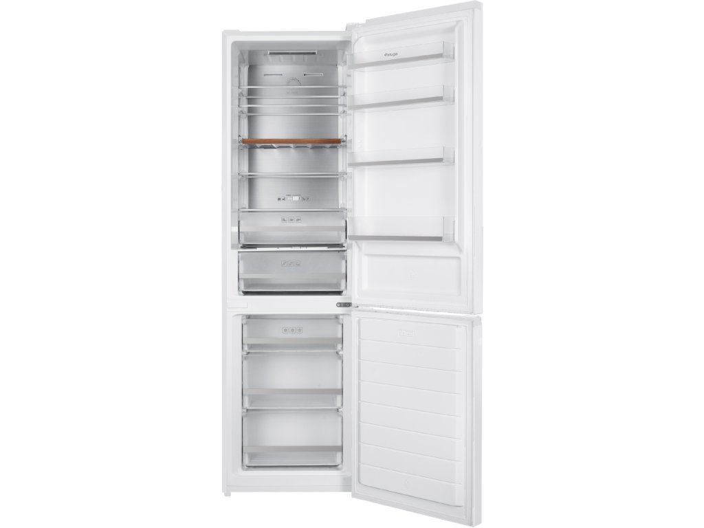 Volně stojící kombinovaná chladnička No Frost; Barevné provedení bílá; Horizontální integrované madlo ve dveřích; Celkový objem 377 l; Šířka 60 cm; Elektronická regulace teploty; Bíle podsvícený displej na dveřích; Led osvětlení; Možnost změny směru otevírání dveří; Funkce ECO, Prázdniny, Super (rychlé) mrazení, zámek displeje, signál otevřených dveří; En. třída C; Spotřeba el. energie: 168 kWh/rok; Akumulační doba (výdrž bez proudu) 13,5 h; Hlučnost pouhých 39 dB(A); Klimatická třída SN-T; Rozměry (VxŠxH): 200,5 x 60 x 67,5 cm.