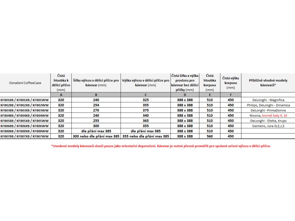 - Pro kávovary s maximální hloubkou 55,0 cm