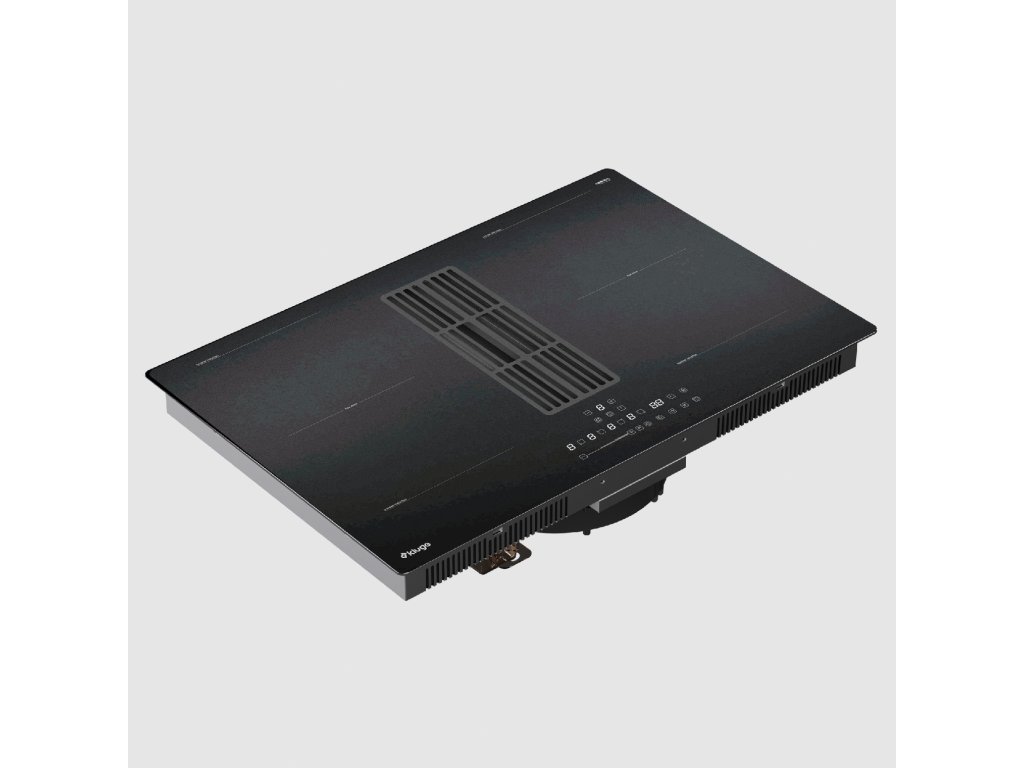 Indukční varná deska s integrovaným odsavačem par, šířka 80 cm; Povrch z matného černého skla s bílým LED podsvícením; Dotykové ovládání Mono Slider Control; 9 stupňů nastavení výkonu varných zón včetně Boost; 4 varné zóny: přední levá a pravá 190×190 mm / 1,5–2,0 kW, zadní levá a pravá 190×190 mm / 2,0–2,8 kW; 2x Flexi zóna; Integrovaný odsavač s BLDC motorem 170 W; Max. výkon odtahu: 593 m³/h; Hlučnost 78 dB(A); 3 funkce vaření a funkce Smart pause – snížení výkonu všech zapnutých zón; Časovač s možností nastavení až do 99 minut; Upozornění na zbytkové teplo a dětský zámek; Detekce nádobí a automatická ochrana vypnutí; Celkový příkon: 7,57 kW; Rozměry (V׊×H): 20 × 77 × 52 cm.