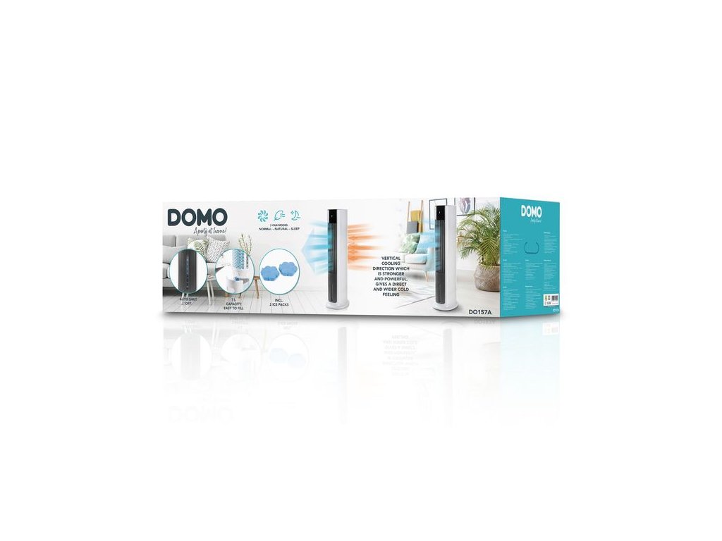 Tento ochlazovač vzduchu vás potěší svými dalšími funkcemi. Oscilace navíc zajišťuje pohyb proudu vzduchu. Ochlazovač vzduchu DOMO nabízí příkon 65 W. Jeho maximální hlučnost činí 64 dB. Tato úroveň hluku je podobná šumu v tichém bytě. Tichý ochlazovač vzduchu DOMO se řadí k pohodlným a bezpečným přístrojům pro zdravý spánek. K dispozici máte 4 rychlosti, pomocí nichž si můžete přizpůsobit sílu proudění vzduchu. Rychlostí 500 m³/h se díky ochlazovači rozpohybuje líný letní vzduch. Jeho barva je bílá a černá. Rozměry ochlazovače vzduchu DOMO dosahují 105 × 27 × 34,5 cm (V׊×H). Hmotnost přístroje se rovná 11,4 kg.