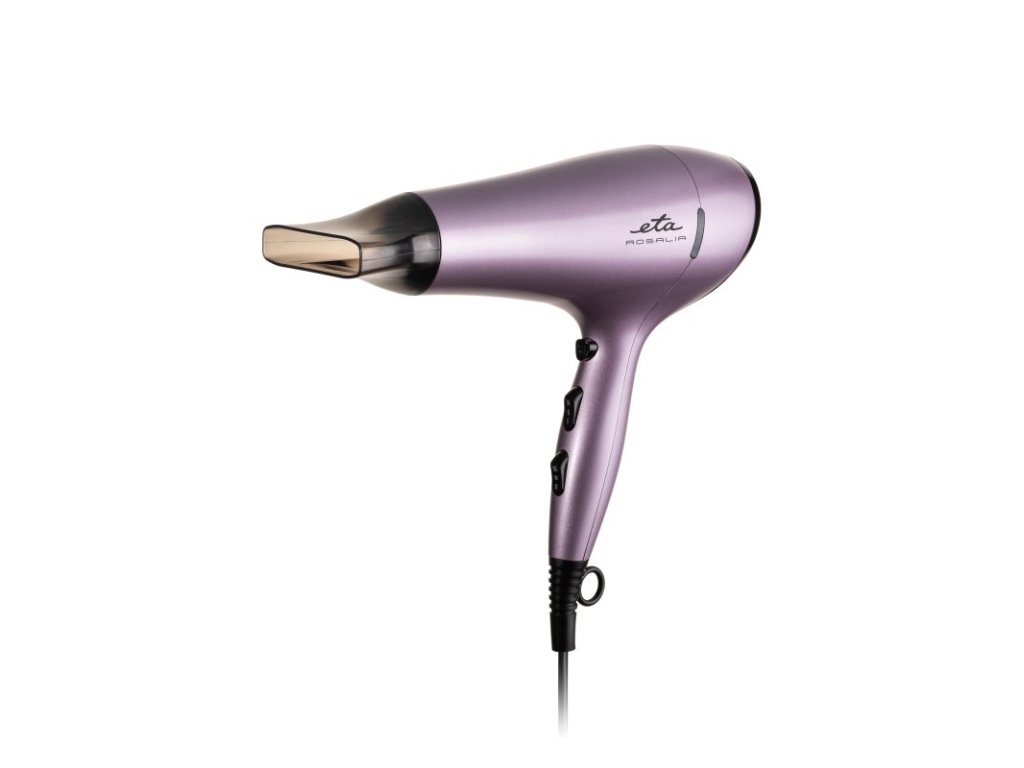 Pod něžným designem fénu ETA Rosalia se skrývá výkonný motor a funkce vyladěné tak, aby vás domácí styling vlasů bavil a zároveň dovedl k vytouženým výsledkům. Oddělené spínače na rukojeti nabízí pohodlné nastavení teploty vzduchu s výběrem ze tří stupňů i možnost volby ze dvou rychlostí proudění.