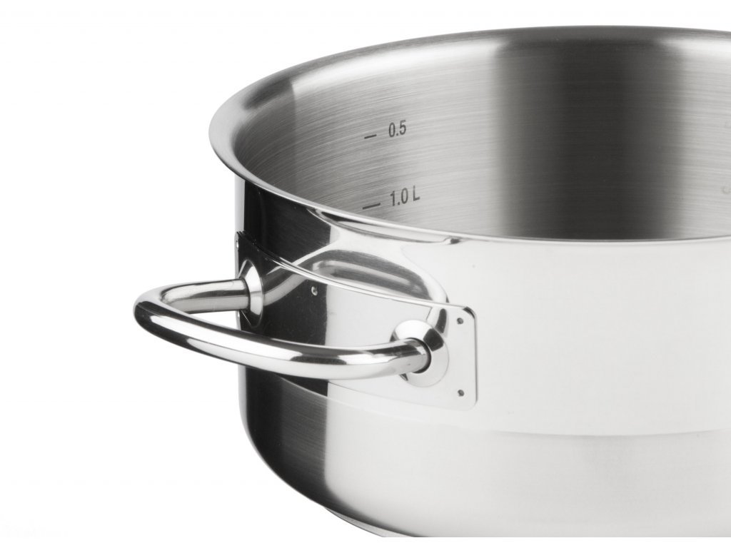 Celokovové úchyty rendlíku i poklice mají přerušené tepelné mosty a při použití na sporáku nepálí. Nádoba má široký odlévací okraj pro snadnou manipulaci s obsahem bez ukapávání a zašpinění nádoby. Pro komfortní údržbu a pohodlné vaření je vnitřní povrch rendlíku 3x jemně broušený. Vnější povrch je vyleštěný do zrcadlového lesku.