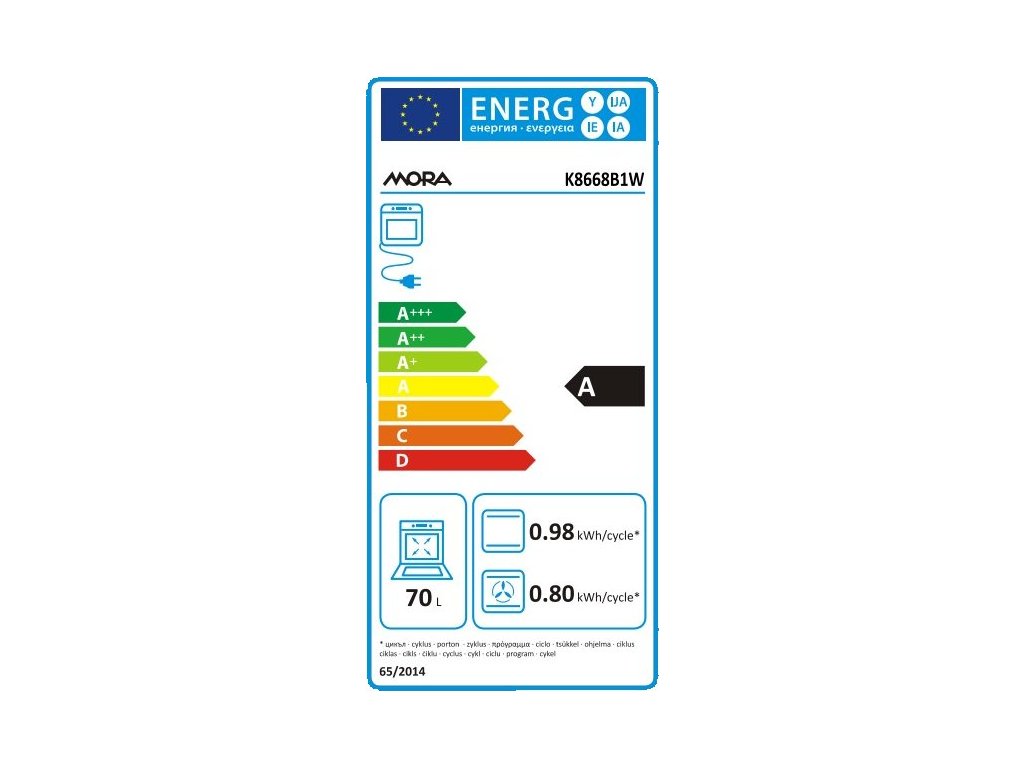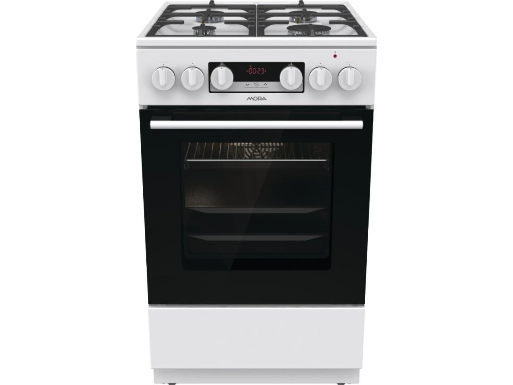 Kombinovaný sporák Mora K 8668 BW1 v bílém provedení s multifunkční troubou v objemu 70 l Vás překvapí energeticky úspornou třídou A. Plynové hořáky s pojistkami STOP GAS a integrovaným zapalováním jsou kryté dvoudílnou mřížkou STABIL PLUS, která zajišťuje bezpečný posun nádobí ve všech směrech. Díky digitálnímu časovému spínači s hodinami se Vám již nikdy nespálí oběd, tato praktická funkce Vám přinese mnoho užitku. Lze nastavit odložený start a ukončení pečení, pouze ukončení pečení a minutka, samozřejmostí je nastavený aktuální čas. Disponuje funkcí páry, kterou ocení především příznivci zdravé výživy. Připravíte s ní jídla rychle a šetrně, takže si zachovají maximum vitamínů a stopových prvků. Dále je trouba vybavená 11 pečicími programy, které jsou navržené přesně podle potřeb konkrétních jídel. Vykouzlíte například výbornou pizzu jako z italské restaurace (program Pizza), pomalu upečete pečínku a efektivně rozmrazíte hotové porce jídla. Pokud si rádi pochutnáváte na hranolkách nebo kuřecích nugetách, ale nedopřáváte si je tak často kvůli vysoké kalorické hodnotě, můžete také zkusit program pro horkovzdušné fritování bez tuku. Hotovky většinou volíme tehdy, když nás tlačí čas. Zvykli jste si, že předehřátí trouby trvá celou věčnost? Na to teď zapomeňte. Tato trouba se předehřeje na 200 ˚C do 5 minut, což je mnohem rychleji, než bývá zvykem. Nové bezpečné závěsy dvířek zaručují bez Vaší asistence velmi tiché a šetrné zavírání dvířek trouby. Pro zvýšení komfortu obsluhy je trouba vybavená teleskopickým výsuvem, které umožní bezpečnou manipulaci s připravovaným jídlem, aniž byste ho museli z trouby vytáhnout. Ve spodní části sporáku je praktický úložný prostor, do kterého snadno uložíte příslušenství v podobě roštu, mělkého plechu a MAXI pekáče XXL o objemu až 8 l. Perfektní vyčištění vnitřního prostoru po každém pečení zajistí funkce ECO CLEAN, díky které odstraníte i větší nečistoty bez nutnosti použít čisticí prostředek.