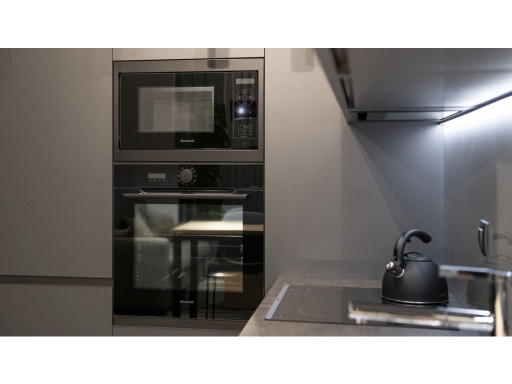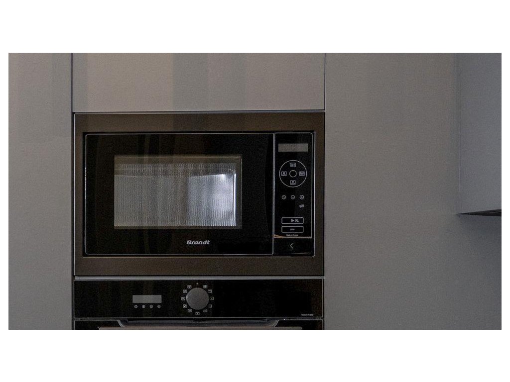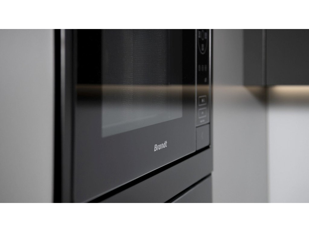 Představujeme vám vestavnou mikrovlnnou troubu od značky Brandt , která kombinuje eleganci s vysokou funkčností. Na první pohled vás zaujme elegantní černé tvrzené sklo zapuštěné v černém kovovém rámu dveří, díky čemuž se tato mikrovlnná trouba stane skvělým doplňkem do vaší moderní kuchyně.