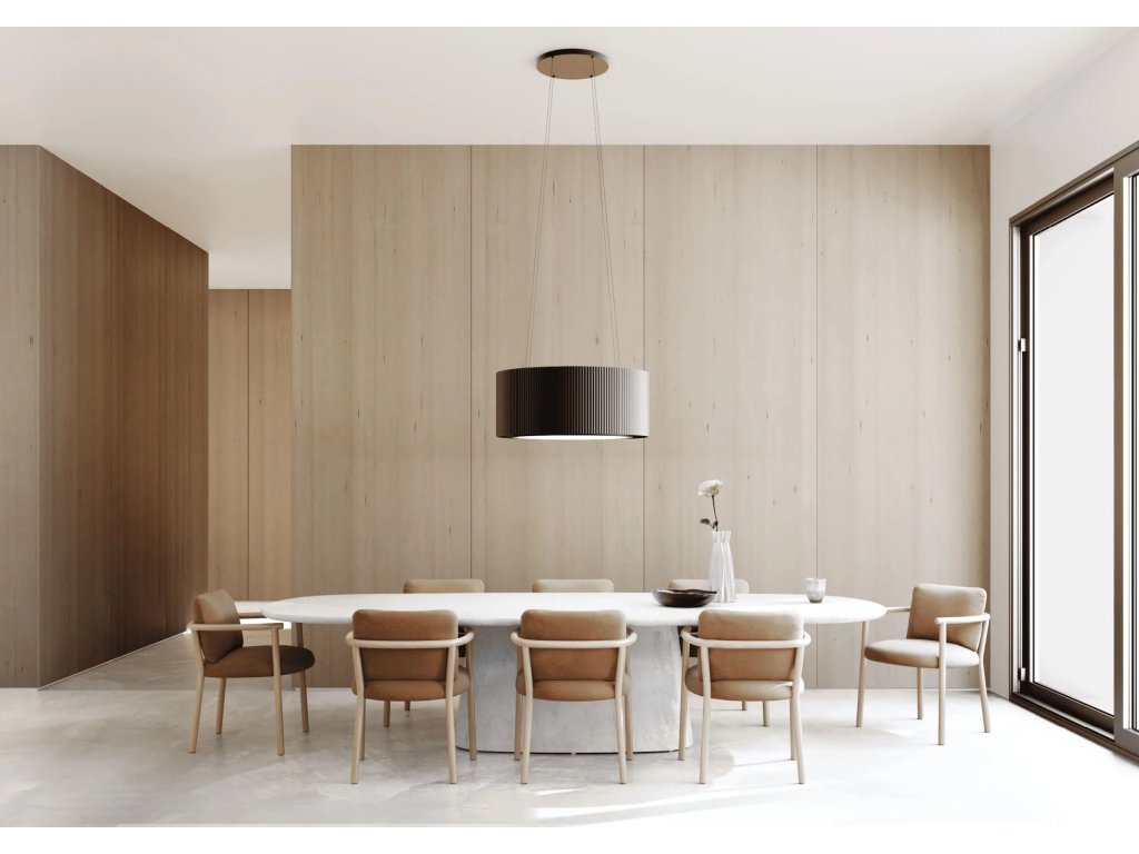 Ostrůvkový odsavač MONO LIGHT 80 ECRU z prémiové řady designových odsavačů Ciarko Design; Kombinace odsávání s moderním elegantním LED osvětlením; Provedení matný kov v béžové barvě; Unikátní plisovaný (žebrovaný) povrch, který dodává kuchyni stylový vzhled; Moderní design: Nabízí elegantní a moderní vzhled, který doplní různé styly kuchyní; Anti Fingerprint povrch: Saténový povrch, který odolává otiskům prstů a nečistotám a snadno se čistí; Ručně malovaný, třívrstvý nátěr pro větší odolnost a estetický vzhled; Velký světelný panel poskytuje rovnoměrné a intenzivní osvětlení nad varnou plochou; LED Warm2Cold osvětlení: Nastavitelná teplota světla od 2900K (teplé) do 6000K (chladné), což zlepšuje vzhled a funkčnost vaší kuchyně; Instalace na recirkulaci; Long Life filtry z aktivního uhlíku pro režim recirkulace: Odolné filtry Long Life M/P, snadná instalace shora s životností až 3 roky, regenerovatelné každých 4-6 měsíců a vhodné do myčky nádobí; Tichý, úsporný, výkonný a spolehlivý BLDC (invertorový) motor s dlouhou životností; GestureControl: Bezdotykové ovládání digestoře: osvětlení a rychlosti ventilátoru; Dodává se s dálkovým ovládáním pro větší pohodlí; 4 stupně intenzity odsávání včetně BOOST; Kompatibilita s indukčními varnými deskami Ciarko Design; Výkon odtahu ve standardním režimu 180 - 360 m3/h; Výkon odtahu v režimu BOOST až 640 m³/h; Hlučnost ve standardním režimu 41-56 dB; Hlučnost v režimu BOOST až 67 dB; Energetická třída A+; Roční spotřeba energie 37 kWh; Rozměry (VxŠ): max 285,6 x 80 cm