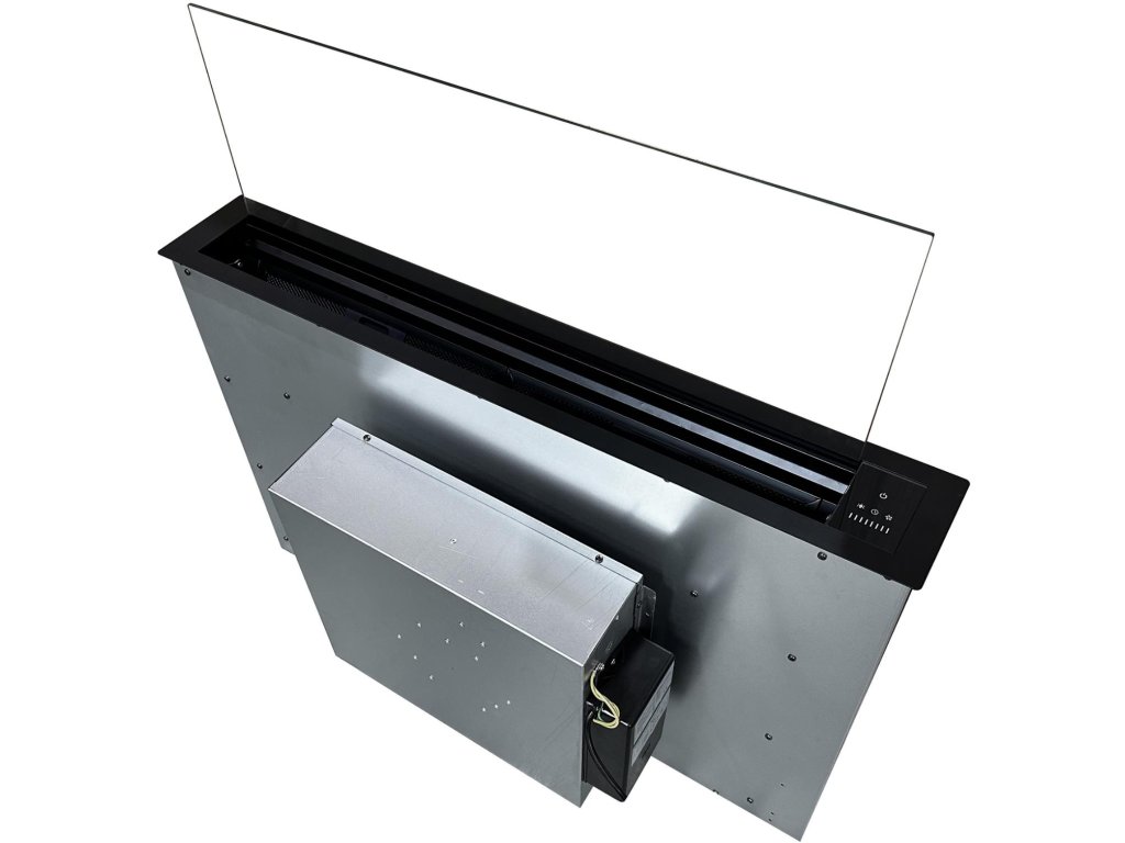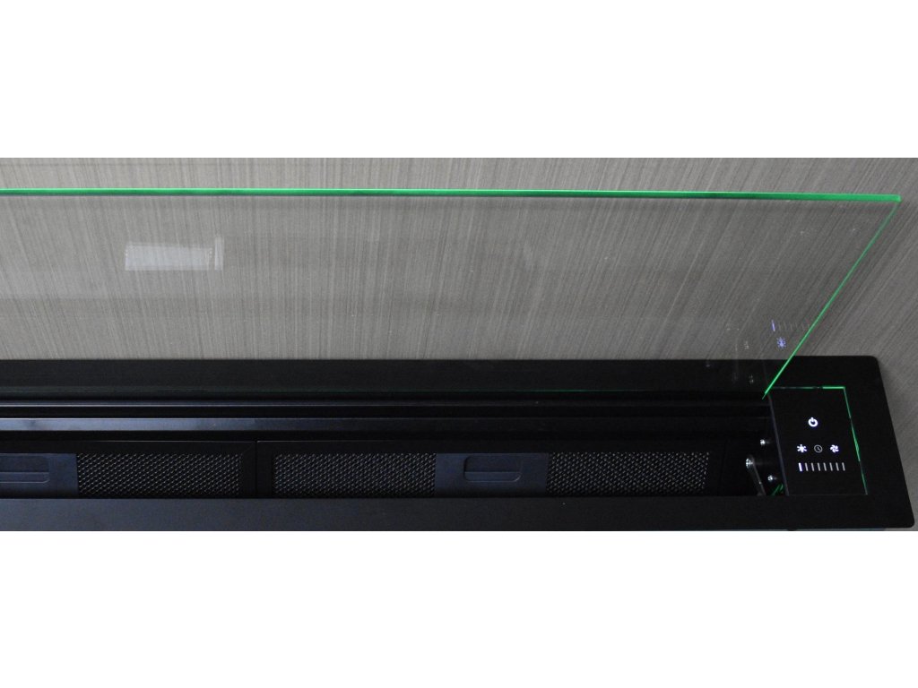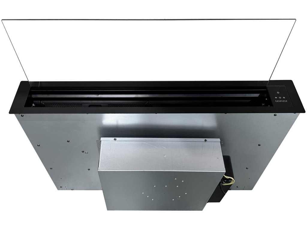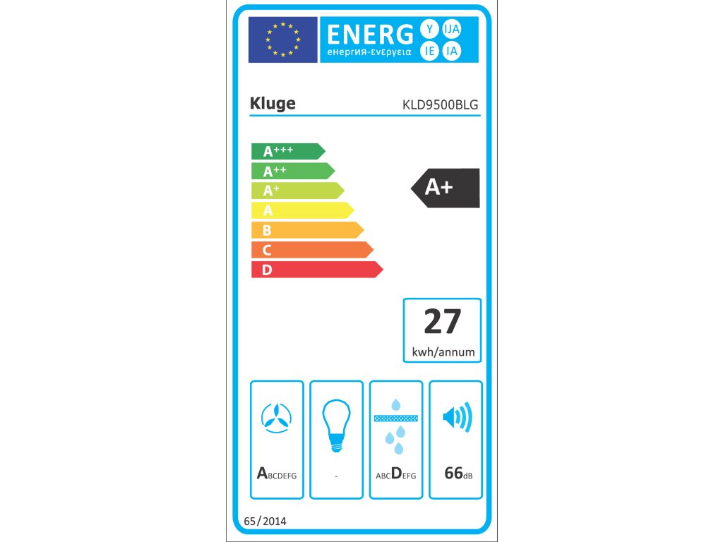Výsuvný odsavač par Kluge KLD9500BLG s šířkou 90 cm s výsuvným panelem z čirého skla a instalací přímo do pracovní desky; Moderní design a černé barevné provedení s kombinací nerezové oceli a čirého a černého skla; Ovládání dotykové a podsvícené, s osmi úrovněmi rychlosti a speciálním režimem Boost; Tento režim se po 5 minutách automaticky vrátí na úroveň 8; Osvětlení 6 W umožňuje nastavení barvy světla; Barvu světla lze nastavit v šesti variantách: Bílá, Červená, Zelená, Modrá, Žlutá, Fialová, Oranžová, Zelenožlutá; Funkce odloženého vypnutí s výchozím nastavením na 5 minuty; Výkon odtahu: 302,8 – 629,4 m³/h (696 m³/h v režimu Boost); Hlučnost: 50 – 66 dB(A) (72 dB(A) v režimu Boost); Tukový filtr je 5-vrstvý hliníkový a je vhodný pro mytí v myčce; Ochrana proti přivření; Provoz je možný v režimu recirkulace s použitím uhlíkového filtru; Třída energetické účinnosti A+; Roční spotřeba energie je pouhých 26,8 kWh/rok; Rozměry (ŠxHxV): 86,8 x 23 x 55,2 cm