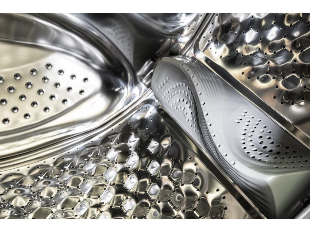- Bílé barevné provedení ● Nerezový buben o objemu 52,7 l